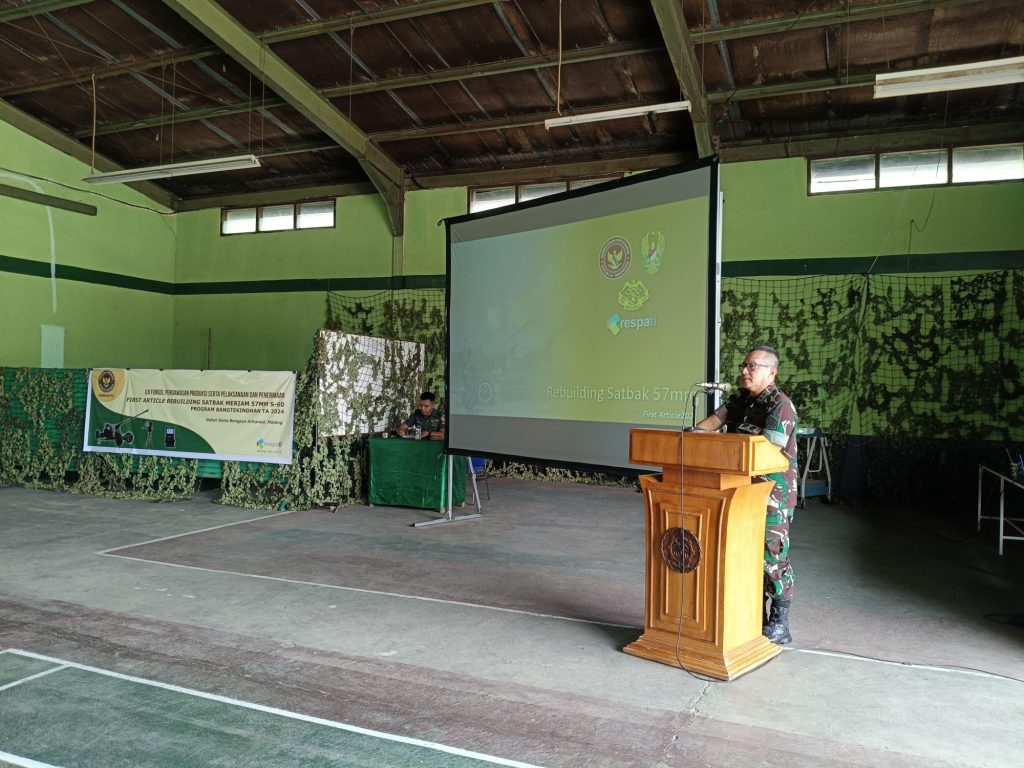 Kegiatan dimulai dengan presentasi oleh Dirut PT Respati Solusi Rekatama dan dilanjutkan dengan kegiatan demonstrasi. Dalam sambutannya Dirjen Pothan Kemhan menyampaikan bahwa kemandirian industri pertahanan adalah amanat Undang-undang yang harus diwujudkan. Salah satu ciri khas negara maju diantaranya adalah Kemandirian dibidang Industri Pertahanan. Oleh karenanya Ditjen Pothan Kemhan selaku Pembina Industri Pertahanan, siap untuk mewujudkan modernisasi Alutsista salah satunya melalui Program Bangtekindhan. First Article Rebuilding Satbak Meriam 57 MM S-60 yang merupakan produk hasil anak bangsa dalam mendukung kebutuhan operasional Angkatan dalam hal ini Arhanud TNI AD.