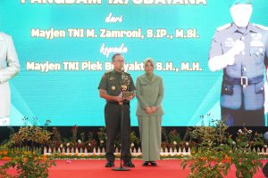 Denpasar, 16 April 2025. Direktur Jenderal Potensi Pertahanan Kemhan – Mayjen TNI Piek Budiyakto mengikuti rangkaian acara lepas sambut Panglima Komando Daerah Militer (Pangdam) IX/Udayana di Makodam IX/Udy Bali. Kegiatan ini menandai berakhirnya masa kepemimpinan Mayjen TNI Muhammad Zamroni, S.IP., M.Si., dan resmi dimulainya tugas Mayjen TNI Piek Budyakto sebagai Pangdam IX/Udayana yang baru. Acara dihadiri oleh para pejabat TNI, Forkopimda Bali Nusra, tokoh masyarakat, serta perwakilan dari berbagai instansi sipil dan militer, acara ini menjadi momen penting dalam tongkat estafet kepemimpinan Kodam IX/Udayana serta menandai bahwa beliau secara resmi siap menjalankan tugas sebagai Pangdam.