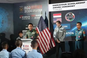 Di sela rangkaian Indo Defence 2025 Expo & Forum, Dirjen Potensi Pertahanan Kemhan Laksda TNI Sri Yanto menganugerahkan beasiswa bergengsi Astronaut Al Worden Endeavor Scholarship kepada Tim Indonesia Mission 22, Jumat (13/6) di JIExpo Kemayoran.