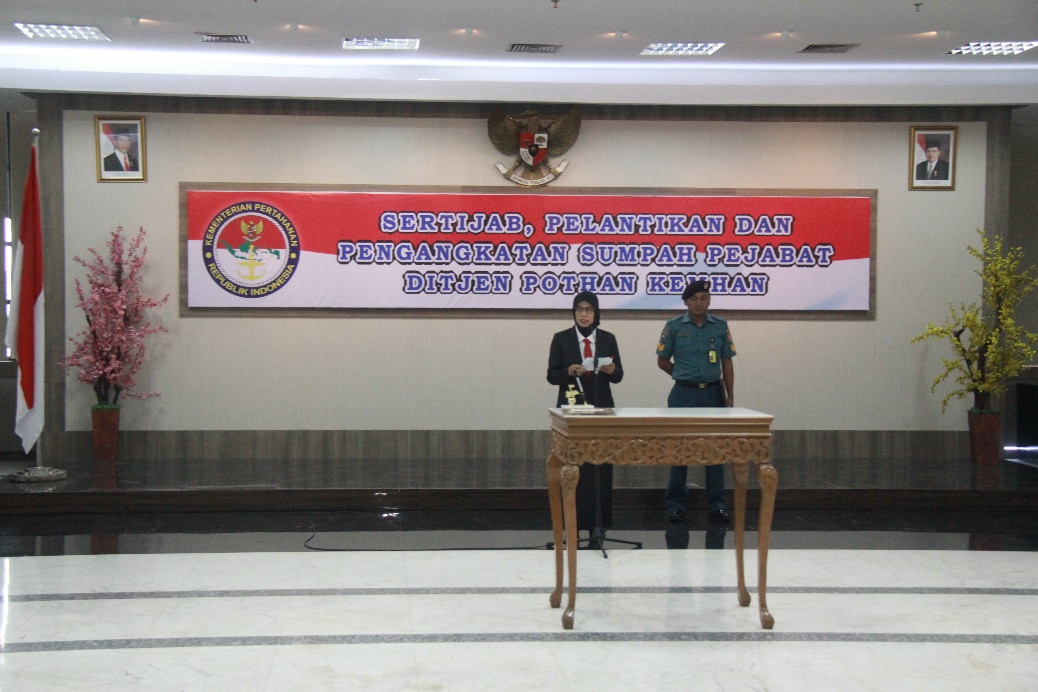 Dirjen Pothan Kemhan Prof. Dr. Ir. Bondan Tiara Sofyan, M.Si. memimpin serah terima jabatan, pelantikan, dan pengangkatan sumpah Pejabat Eselon…
