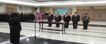 Serah terima jabatan, pelantikan dan pengangkatan sumpah Pejabat eselon II, III dan IV dilingkungan Ditjen Pothan Kemhan dilaksanakan di ruang…