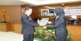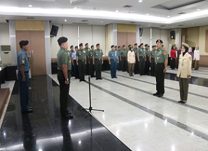 Upacara pelaporan Kenaikan Pangkat setingkat lebih tinggi dari pangkat semula bagi Personel TNI dan PNS di lingkungan Ditjen Pothan Kemhan…