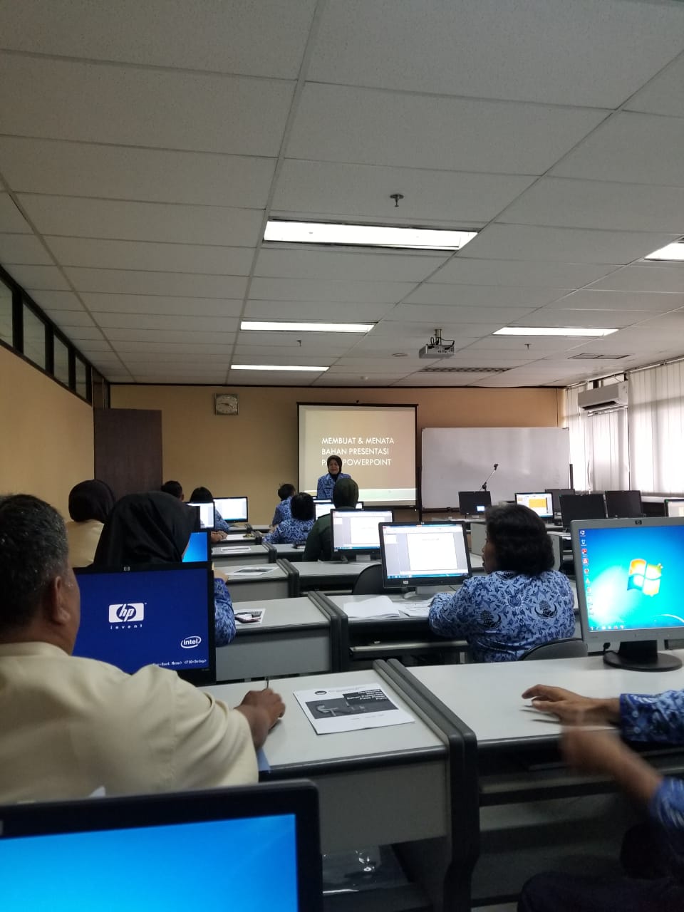 Materi yang disampaikan pada kegiatan ini antara lain “Membuat dan Menata Bahan Presentasi pada Powerpoint” meliputi membuat dan membuka presentasi, membuat presentasi baru, membuka presentasi yang ada, menyesuaikan tata letak slide, dll.