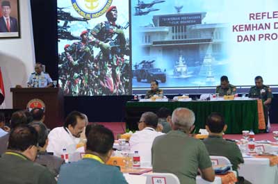 Jumat, 24 Januari 2020Jakarta Dirjen Renhan Kemhan Marsda TNI Dody Trisunu menghadiri kegiatan Rapim Kemhan, TNI dan Polri yang berlangsung selama dua hari Rabu dan Kamis (22-23/01 /2020). Adapun Tema Rapim Kemhan “Pertahanan Semesta Yang Kuat Menjamin Kelangsungan Hidup NKRI”. Dalam paparannya Dirjen Renhan menyampaikan Refleksi anggaran Kemhan dan TNI Tahun 2019 dan Proyeksi Tahun 2020. Anggaran Kemhan/TNI dari tahun ke tahun senantiasa berubah secara dinamis, sesuai dengan perubahan lingkungan strategis, hakekat dan bentuk ancaman, kepentingan dan prioritas kemanan nasional, ketersediaan sumberdaya serta kemampuan pembiayaan negara. Pada tahun 2020, tema RKP adalah “Peningkatan Sumber Daya Manusia Untuk Pertumbuhan Berkualitas”. Selaras dengan tema tersebut, maka sasaran yang ingin dicapai dalam bidang pertahanan adalah “Terjaganya keutuhan dan kedaulatan wilayah NKRI serta keselamatan bangsa” Pemerintah telah mencanangkan lima Prioritas Nasional, dua diantaranya terkait dengan Kementerian Pertahanan yaitu: pertama pembangunan manusia dan pengentasan kemiskinan, kedua stabilitas pertahanan dan keamanan.
