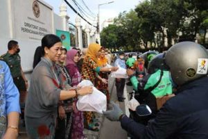 Acara kegiatan UP. DWP Ditjen Renhan Kemhan, Ibu ketua DWP Ditjen Renhan dengan Ibu Nuke Supo Dwi diantara istri dari bapak Dirjen Renhan dan ibu-ibu Pengurus UP. DWP Renhan berkenan berbagai takjil kepada pengemudi driver online dan masyarakat sekitar kantor Ditjen Renhan Kemhan.