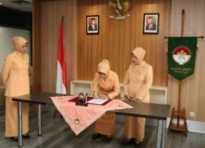 Sertijab wakil ketua UP. DWP Ditjen Itjen Renhan Kemhan dari Ny. Tri Yuniar Panjaitan kepada Ny. Lena Rabimin dan Pengangkatan pengurus DWP Ditjen Itjen Renhan Kemhaan dari Ny. Lena Rabimin kepada Ny. Latief sebagai Ketua Bidang Ekonomi.