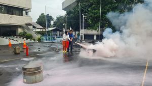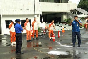 - Pada saat dilaksanakan demonstrasi pemakaian peralatan pemadam kebakaran diharapkan masing-masing perorangan memperhatikan dan memahami agar dapat mempergunakan peralatan pemadam kebakaran apabila terjadi kebakaran.