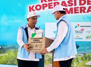 Pada acara peresmian program KDMP, Menhan menyerahkan secara simbolis dukungan obat-obatan hasil produksi Lafi TNI kepada Menkop yang terdiri dari :