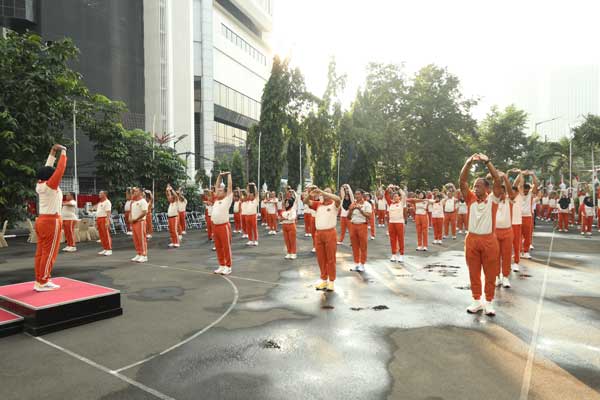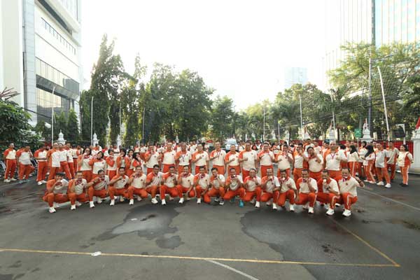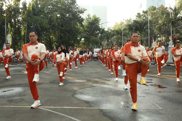 Jakarta,Selasa, 5 Agustus 2025. Dirjen Renhan Kemhan Laksda TNI Ir. Supo Dwi Diantara, S.T.,M.Tr.Opsla., IPU., M.A., M.S.P., APEC Eng., ASEAN Eng didampingi Pejabat eselon II, eselon III dan seluruh personil Renhan melaksanakan olah raga bersama di Lapangan Apel Ditjen Renhan Kemhan.