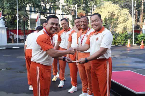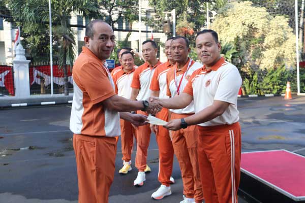 OLAH RAGA BERSAMA DAN PEMBERIAN PENGHARGAAN KEPADA ATLIT DITJEN RENHAN KEMHAN JUARA DALAM BERBAGAI CABANG OLAH RAGA DI POR KEMHAN
