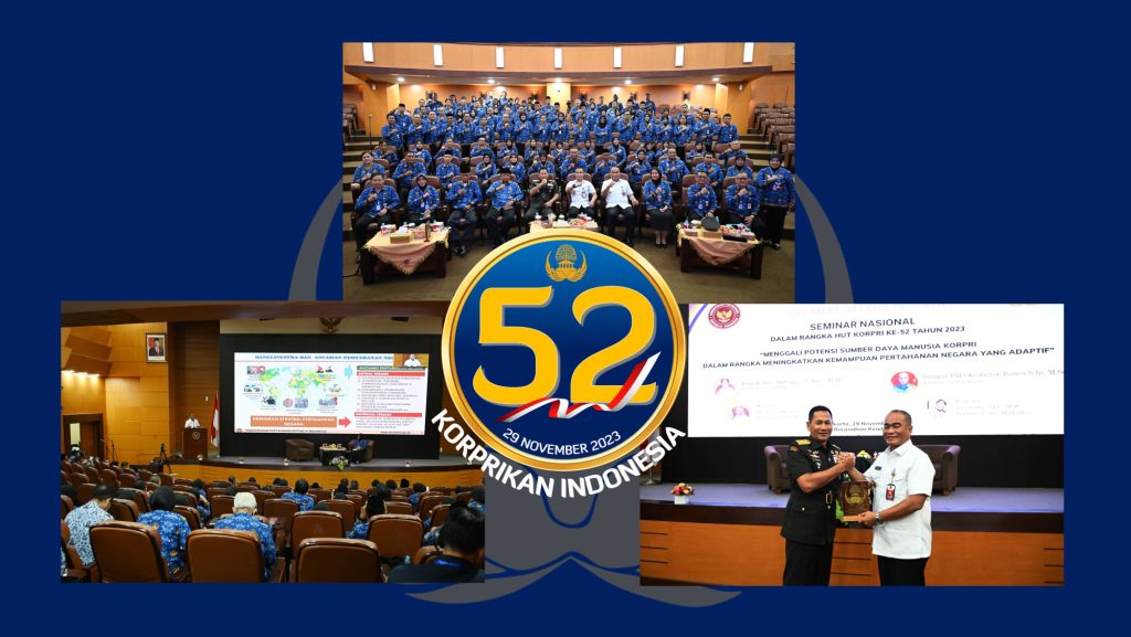 Dalam rangka memperingati HUT KORPRI Ke-52 Tahun 2023, Korpri Pusat Kemhan mengadakan kegiatan Seminar Nasional, bertempat di Aula Gedung Piere Tendean Kementerian Pertahanan RI Lantai 9, Jakarta. Rabu, 29 November 2023.
