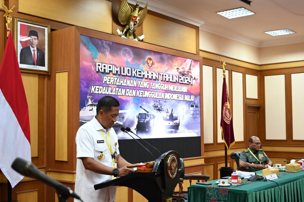 Kegiatan Rapim UO Kemhan 2024 secara tatap muka dihadiri Warek I Unhan, Katimlak KKIP, KA PCLS dan Pejabat Eselon I dan II, III dan IV Kemhan. (Bag Datin Baranahan Kemhan).