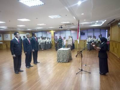 Jakarta, Selasa (30/04/2019). Kabalitbang Kemhan Dr. Anne Kusmayati, pada hari Selasa di kantor Balitbang Kemhan Jl. Jati No.1 Pondok Labu Jakarta Selatan, memimpin upacara pengangkatan, pelantikan, dan serah terima jabatan pejabat setingkat Eselon II dan III Balitbang Kemhan. Berdasarkan Keputusan Menteri Pertahanan Nomor : KEP/448/M/IV/2019 tanggal 11 April 2019 tentang Pemberhentian dari dan Pengangkatan dalam Jabatan Pimpinan Tinggi di Lingkungan Kementerian Pertahanan. Kapuslitbang Strahan Balitbang Kemhan dari Laksma Pertama TNI Ir. Agus Rustandi, M.EngSc., MMDS., M.A., kepada Kolonel Laut (E) Arif Harnanto, S.T., M.Eng., dan sesuai Keputusan Menteri Pertahanan Nomor : KEP/449/M/IV/2019 tanggal 11 April 2019 tentang Pemberhentian dari dan Pengangkatan dalam Jabatan di Lingkungan Kementerian Pertahanan. Kabid Sarpras Puslitbang Sumdahan Balitbang Kemhan dari Pembina Tk.I IV/b Drs. Pujiantoro, M.M., kepada Kolonel Laut (S) Joko Sutrisno, M.Si(Han) dan Kabag Korlitbang Set Balitbang Kemhan dari Kolonel Arm Budi Setyawan, S.IP., kepada Pembina Tk.I IV/b Drs. Pujiantoro, M.M. Dihadiri oleh Kapuslitbang Iptekhan Balitbang Kemhan Marsma TNI Bambang Wijanarko, S.T., S.E., M.Si(Han), Kapuslitbang Sumdahan Balitbang Kemhan Brigjen TNI Martono, Eselon III dan IV, serta PNS golongan III ke atas.