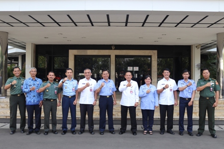 Jakarta, Rabu (17/07/2019). Sekretais Balitbang Kemhan menerima Courtesy Call Rektor Universitas Nurtanio (UNNUR) Bandung – Marsda TNI (Pur) Dr. Tatan Kustana, M.Bus., M.A., di Ruang Rapat Lantai II Gedung Prof. Dr. Soepomo Balitbang Kemhan Jl. Jati No. 1 Pondok Labu Jakarta Selatan. Acara dipimpin oleh Sekretaris Balitbang Kemhan – Brigjen TNI Abdullah Sani dan dihadiri oleh Kapuslitbang Iptekhan Balitbang Kemhan – Marsma TNI Bambang Wijonarko, S.E., S.T., M.Si(Han), Kapuslitbang Strahan Balitbang Kemhan – Laksma TNI Arif Harnanto, S.T., M.Eng., Kabagdatin Set Balitbang Kemhan – Kolonel Inf Fatih El Amin, S.IP., M.Si., Kabid SDAB Puslitbang Sumdahan Balitbang Kemhan – Kolonel Arh Ridwan, S.Sos, Kabid Matra Darat Puslitbang Alpalhan Balitbang Kemhan – Kolonel Kav Herdianto Nuringtyas, S.Sos., Kabid Matra Udara Puslitbang Alpalhan Balitbang Kemhan dan Pembina Tk. I IV/B Drs. Pujiantoro, M.M. Sedangkan Rektor UNNUR didampingi oleh Kabag Kerma UNNUR – Rita Margaretha, S.IP., M.Si., dan Karo APSI UNNUR – Reza Jakaria, S.T.