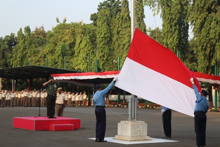 Jakarta, Senin (05/08/2019). Balitbang Kemhan melaksanakan upacara bendera mingguan yang dilaksanakan di lapangan Balitbang Kemhan Jl. Jati No. 1 Pondok Labu Jakarta Selatan. Sebagai Inspektur upacara adalah Kapuslitbang Sumdahan Balitbang Kemhan Brigadir Jenderal TNI Martono, peserta upacara seluruh anggota satker dan subsatker Kemhan di wilayah Pondok Labu serta siswa Badiklat Kemhan.