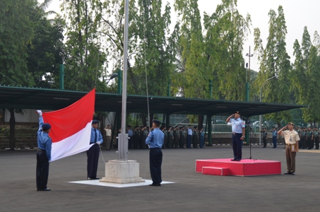 Jakarta, Senin (02/09/2019). Balitbang Kemhan melaksanakan upacara bendera mingguan yang dilaksanakan di lapangan Balitbang Kemhan Jl. Jati No.1 Pondok Labu, Jakarta Selatan. Sebagai Inspektur Upacara adalah Kapuslitbang Iptekhan Balitbang Kemhan yang diwakili Kabid Bekkomlek Puslitbang Iptekhan Balitbang Kemhan Kolonel Tek Hevry Yanto, peserta upacara seluruh anggota satker dan subsatker Kemhan di wilayah Pondok Labu serta siswa Badiklat Kemhan.