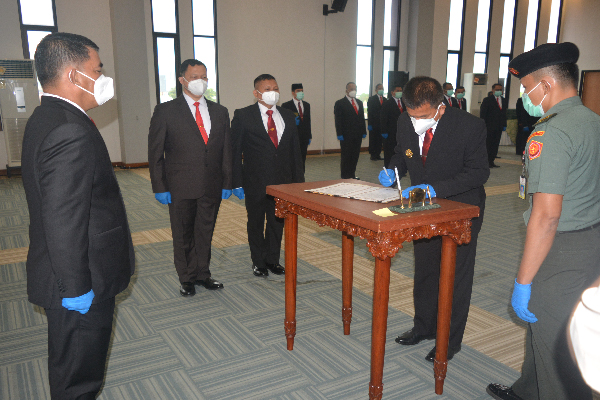 Pondok Labu, Kabainstrahan Kemhan Mayjen TNI Yulius Selvanus memimpin pelantikan Jabatan sekertaris Bainstrahan dan Kapuslola Kawasan Bainstrahan Kemhan RI Senin (30/11/2020)