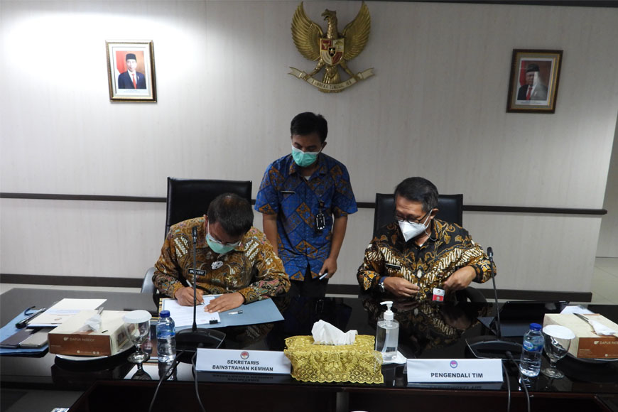 Kegiatan dilanjutkan dengan penandatanganan Pernyataan Hasil Pemeriksaan (PHP) dilanjutkan dengan penyerahan PHP dan tabulasi temuan Wasrik dari tim Wasrik kepada Ses Bainstrahan Kemhan, dan kegiatan dilaksanakan dengan tetap menerapkan protokol kesehatan tatanan normal baru covid-19.