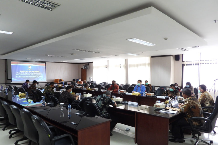 Kemhan (29/01/2021), Sekretaris Bainstrahan Kemhan, Laksma TNI Umar Arief, S.E. kembali menerima Tim Wasrik dari Inspektorat Jenderal Kemhan RI yang dipimpin oleh Inspektur V Brigjen TNI Minan Sinulingga, M,Sc. Turut hadir dalam acara tersebut sebagian Pejabat Eselon III dan IV di lingkungan Baistrahan Kemhan RI. Kunjungan Tim Wasrik tersebut dalam rangka Taklimat Akhir Pengawasan dan Pemeriksaan (Post Audit ) terhadap Progjagar TA. 2020.