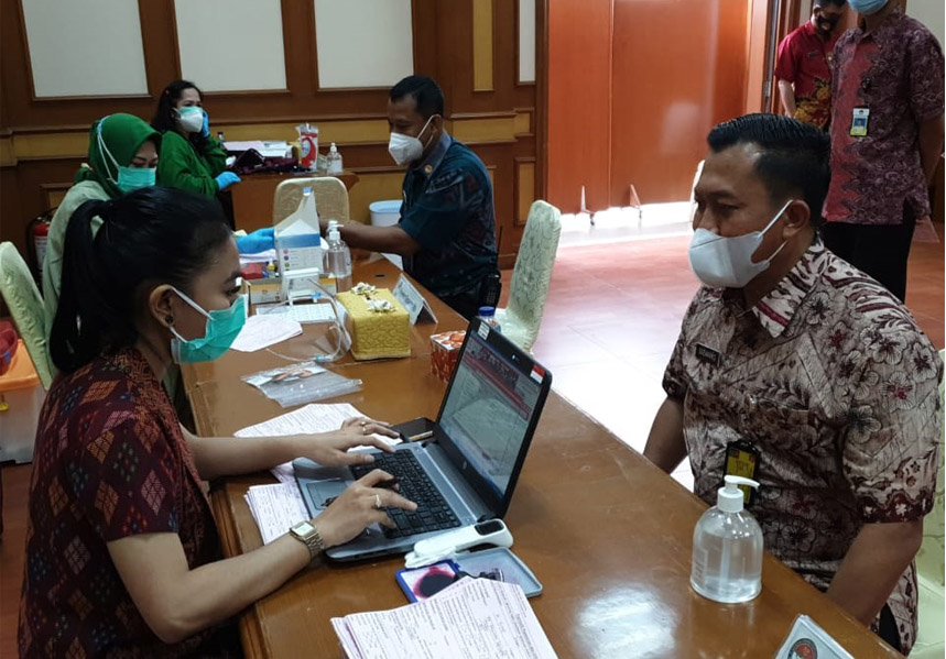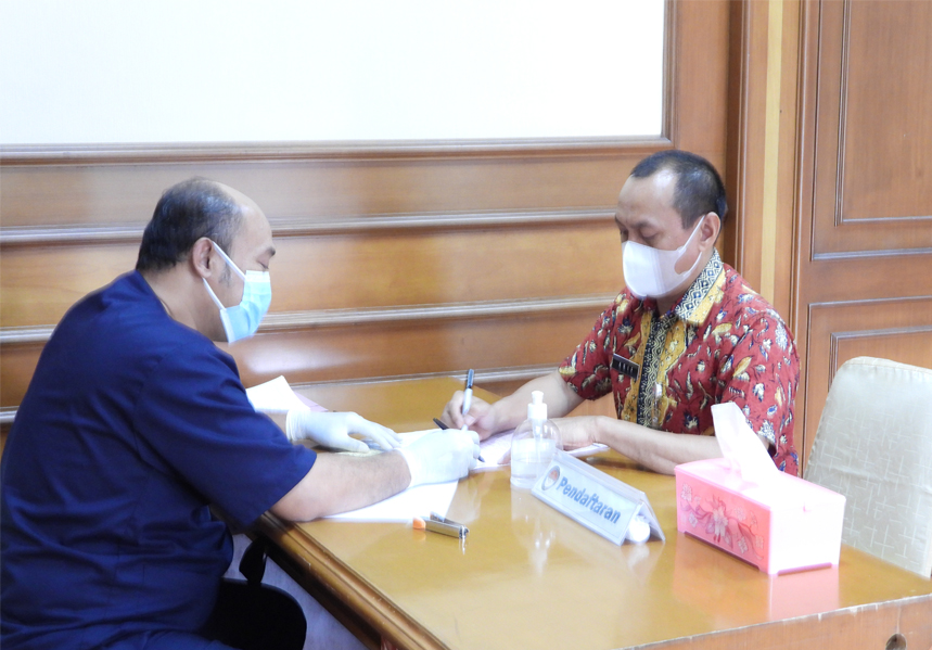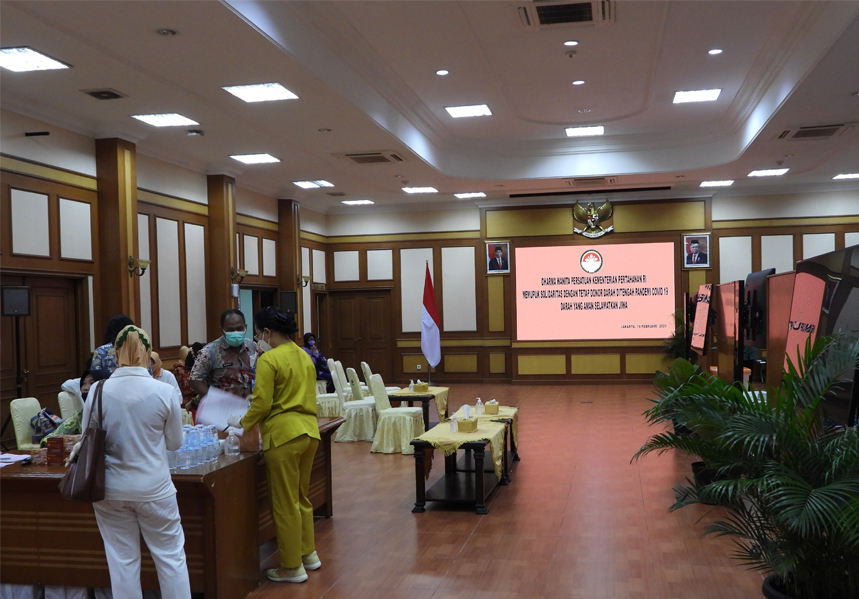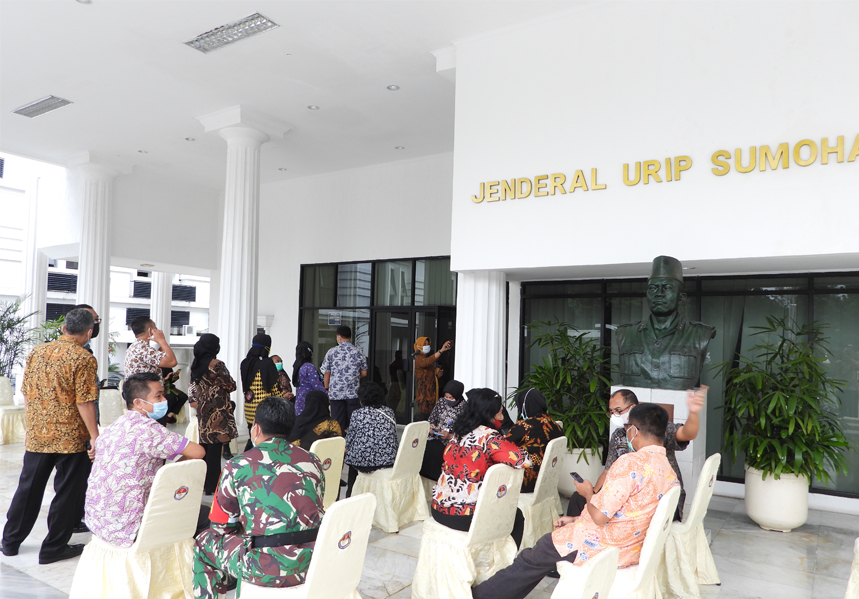 Kemhan(19/02/2021) Kapuslola Kawasan Bainstrahan Brigjen TNI Iswan Gunadi, S.Sos., M.SI. dan Perwakilan personel Bainstrahan Kemhan mengikuti kegiatan Donor darah yang diselenggarakan oleh Dharma Wanita Persatuan Kemhan RI pada Jumat (19/2) di Aula Nusantara I gedung Urip Sumohardjo Kemhan RI Jakarta.