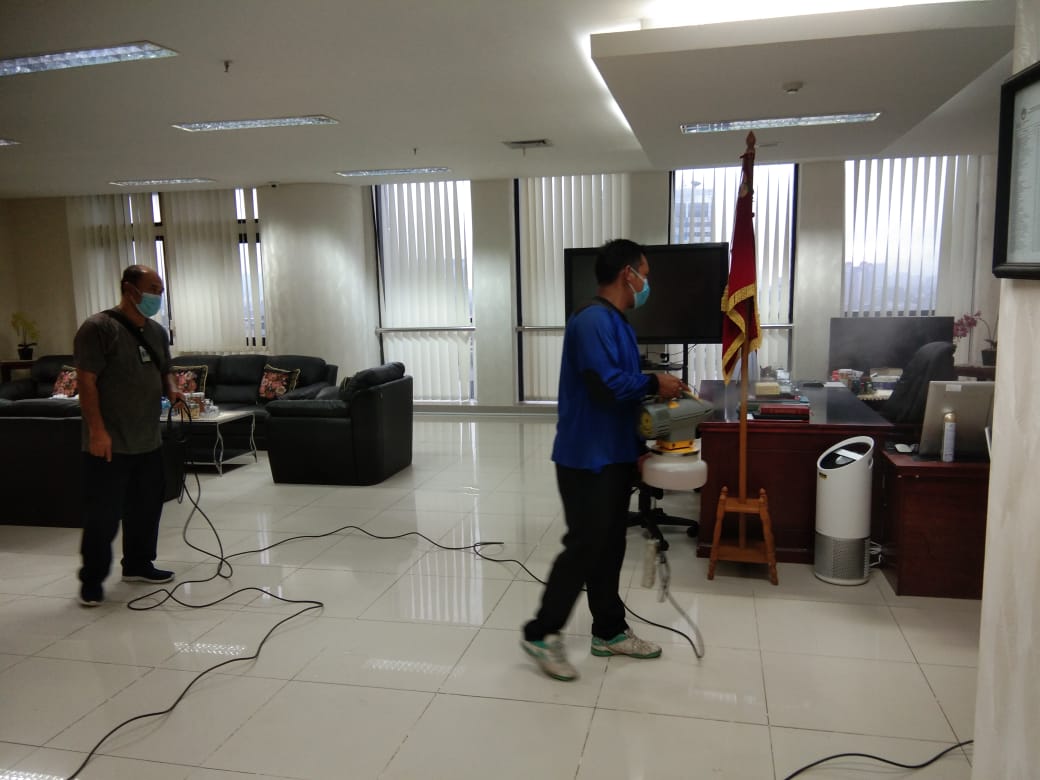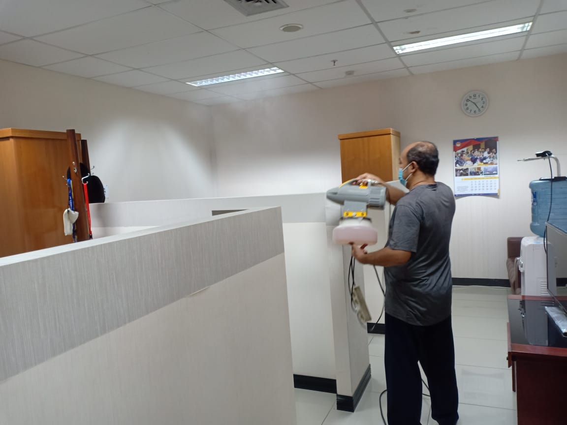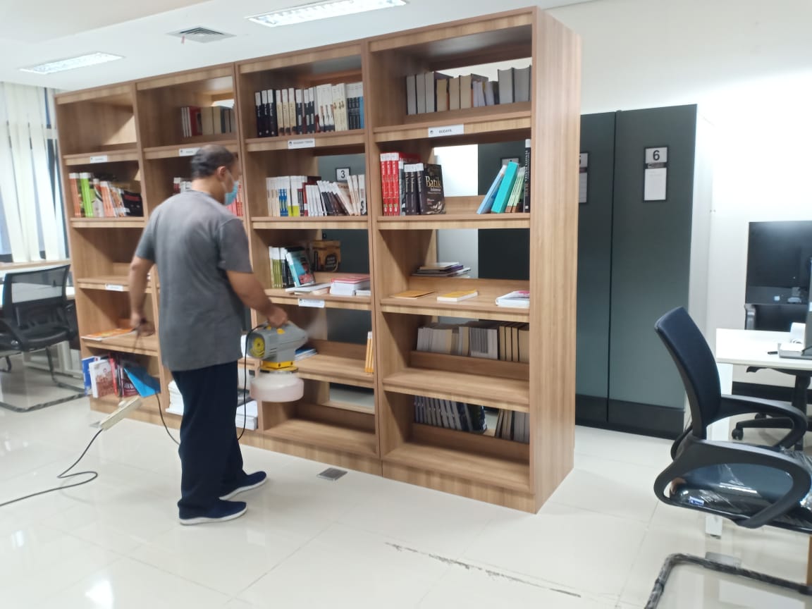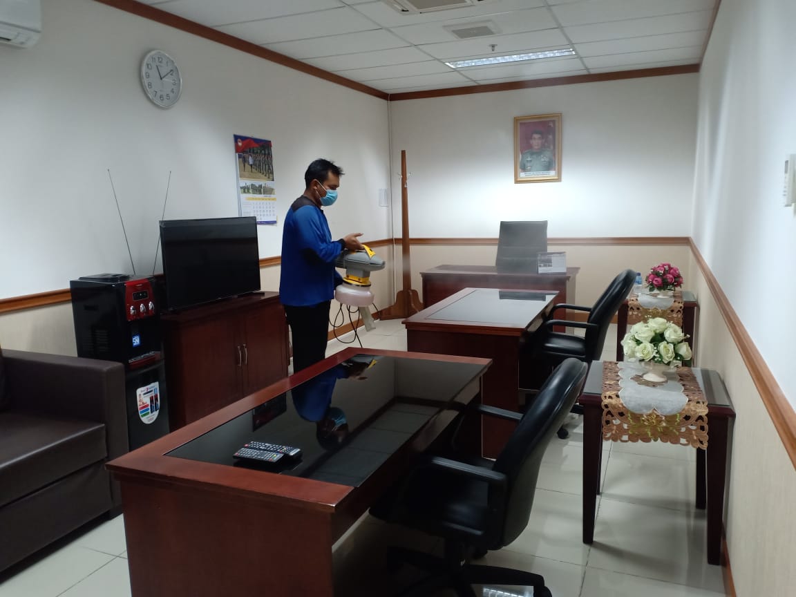 Begitu juga dilingkungan perkantoran pemerintah. Berbagai upaya dilakukan dalam mencegah penularan virus-covid-19. Dilingkungan Sekretariat Bainstrahan Kemhan melaksanakan penyemprotan disinfektan secara rutin agar penyebaran covid-19 dapat dikendalikan untuk menjaga agar aktifitas kerja tidak terganggu dengan adanya wabah covid-19, namun demikian pembatasan pegawai yang masuk kerja dikantor (WFO) juga dibatasi yakni hanya 25 % dari jumlah pegawai, sesui dengan ketentuan yang dikeluarkan pemerintah selama wabah berlangsung.