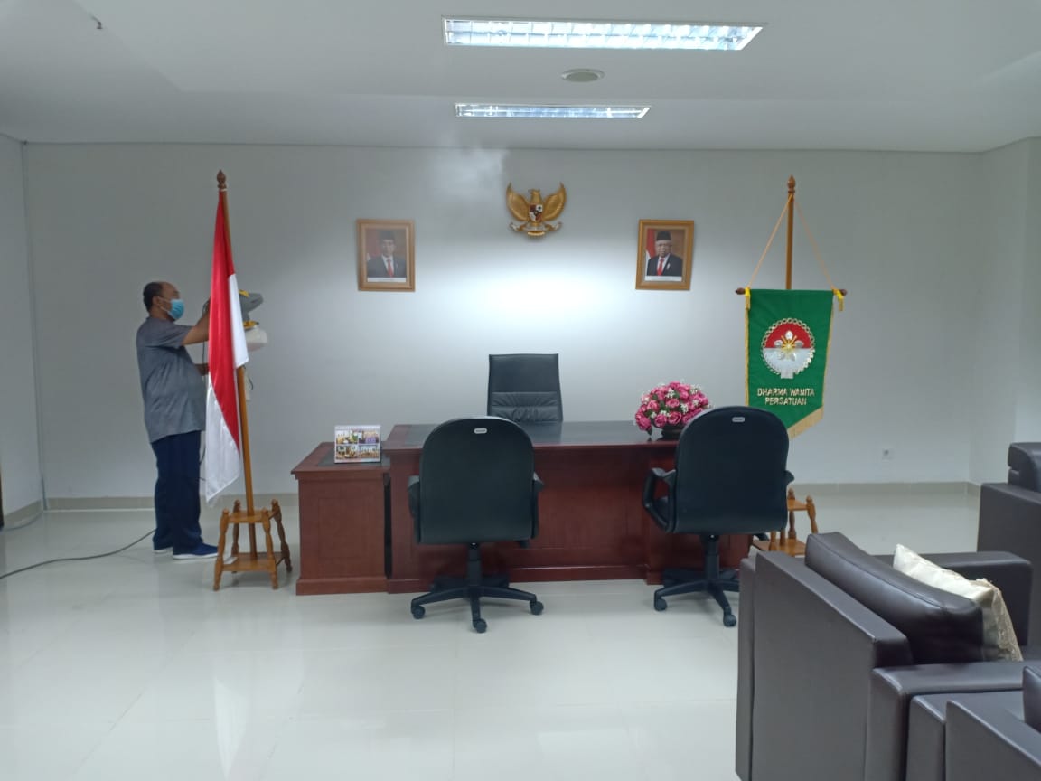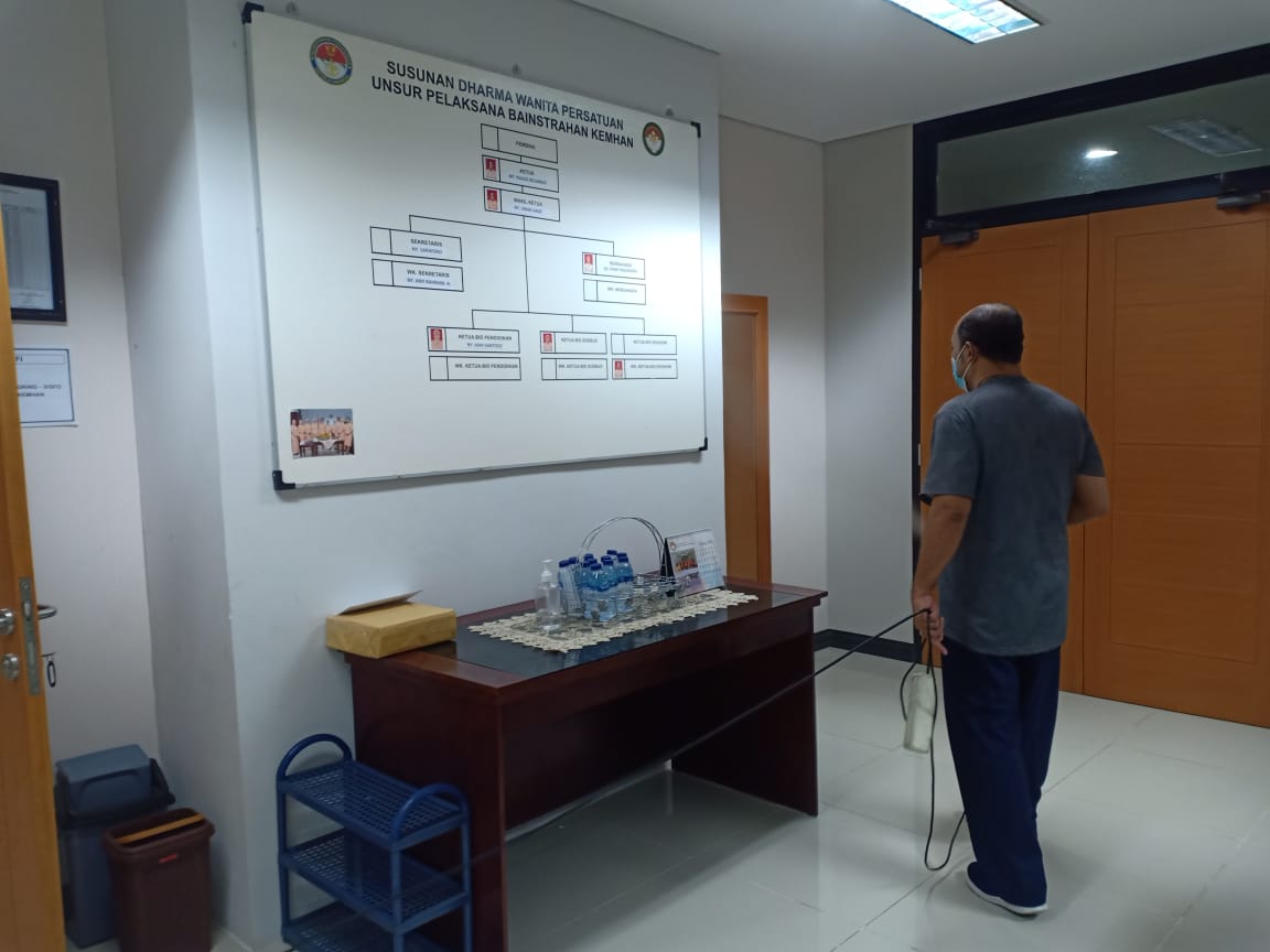 PENYEMPROTAN DISINFEKTAN SEKRETARIAT BAINSTRAHAN KEMHAN