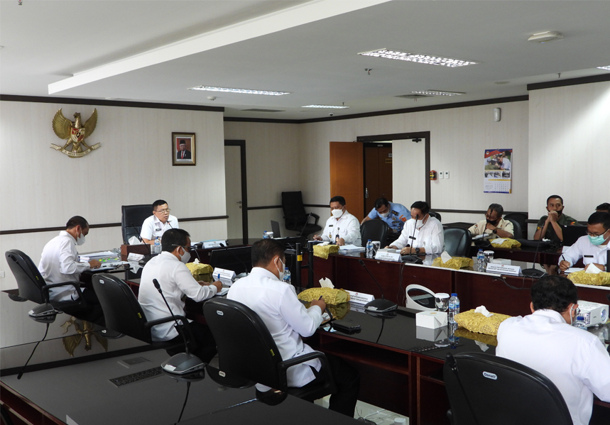 Kemhan (26/08/2021). Sekretaris Bainstrahan Kemhan beserta pejabat Eselon 3 dan Eselon 4 dilingkungan Satker Bainstrahan melaksanakan Rapat secara Daring tentang SAKIP dan Reformasi Birokrasi Kamis, 26-08-2021 diruang Chanti Dharma gedung AH. Nasution Lt.15 Bainstrahan Kemhan.