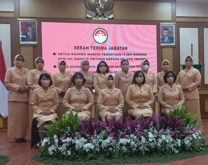 Kemhan (24/11/2021) Dharma Wanita Persatuan Bainstrahan Kemhan melaksanakan Serah Terima Jabatan (Sertijab) dari Ny. Anik Yulius Selvanus kepada Ny. Cera Yudi Abrimantyo, bertempat di gedung Kemhan RI Jakarta Pusat. Rabu, (24/11).