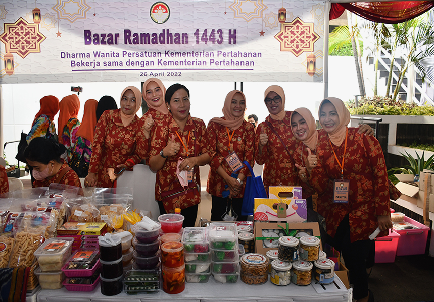 Kemhan – Selasa(26/4/2022) dilakukan acara pembukaan Bazar Ramadhan 1443 Hijriah yang diselenggarakan oleh Dharma Wanita Persatuan Kementerian Pertahanan (DWP Kemhan) bekerja sama dengan Biro Umum Setjen Kemhan, di Lapangan Gedung Ahmad Yani, Jakarta. Bazar Ramadhan yang dibuka secara resmi oleh Penasehat DWP Kemhan Ibu Metty M. Herindra diselenggarakan dalam rangka menyambut Hari Raya Idul Fitri 1443H. Bazar Ramadhan tahun ini diikuti sebanyak 60 stan penyedia kebutuhan pokok sehari-hari dan hasil kerajinan karya anggota DWP Kemhan.