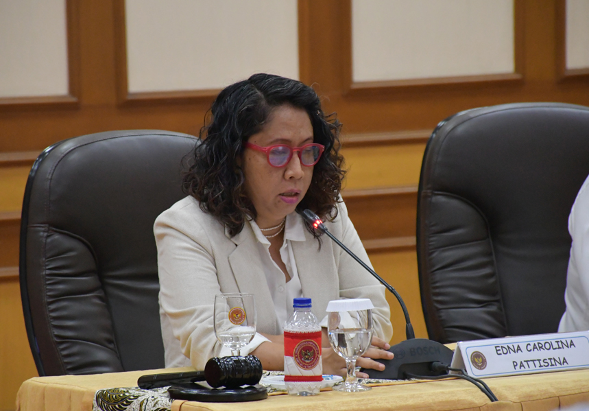 Turut hadir sebagai narasumber, dari Kemlu yang diwakili oleh Direktur Keamanan Internasional dan Perlucutan Senjata Caka Alverdi Awal, dari KOMPAS Edna Caroline Pattisina, dari Binus University Curie Maharani Savitri, Ph.D., Penanggap aktif dari 15 institusi Kementerian / Lembaga.