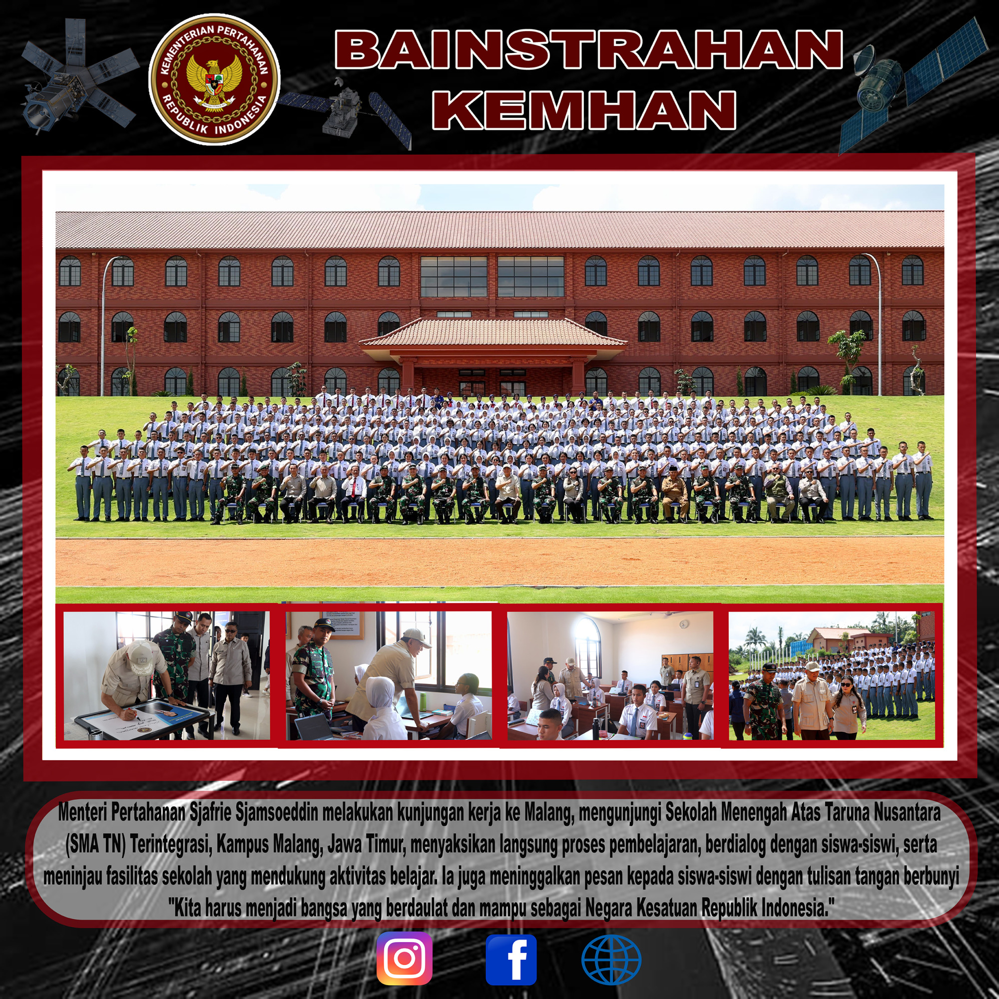 MENHAN MELAKSANAKAN KUNJUNGAN KERJA KE SMA TN MALANG