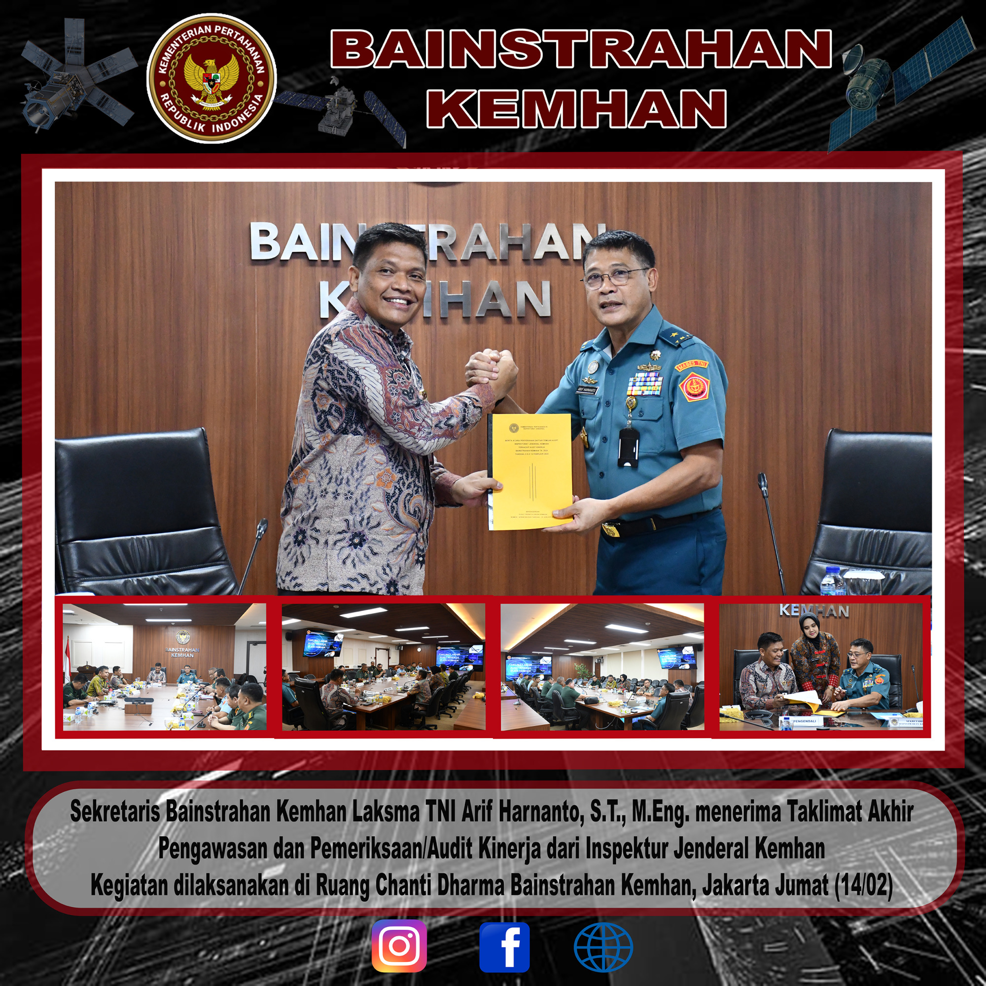 SEKRETARIS BAINSTRAHAN KEMHAN MENERIMA TAKLIMAT AKHIR WASRIK/AUDIT KINERJA DARI IRJEN KEMHAN