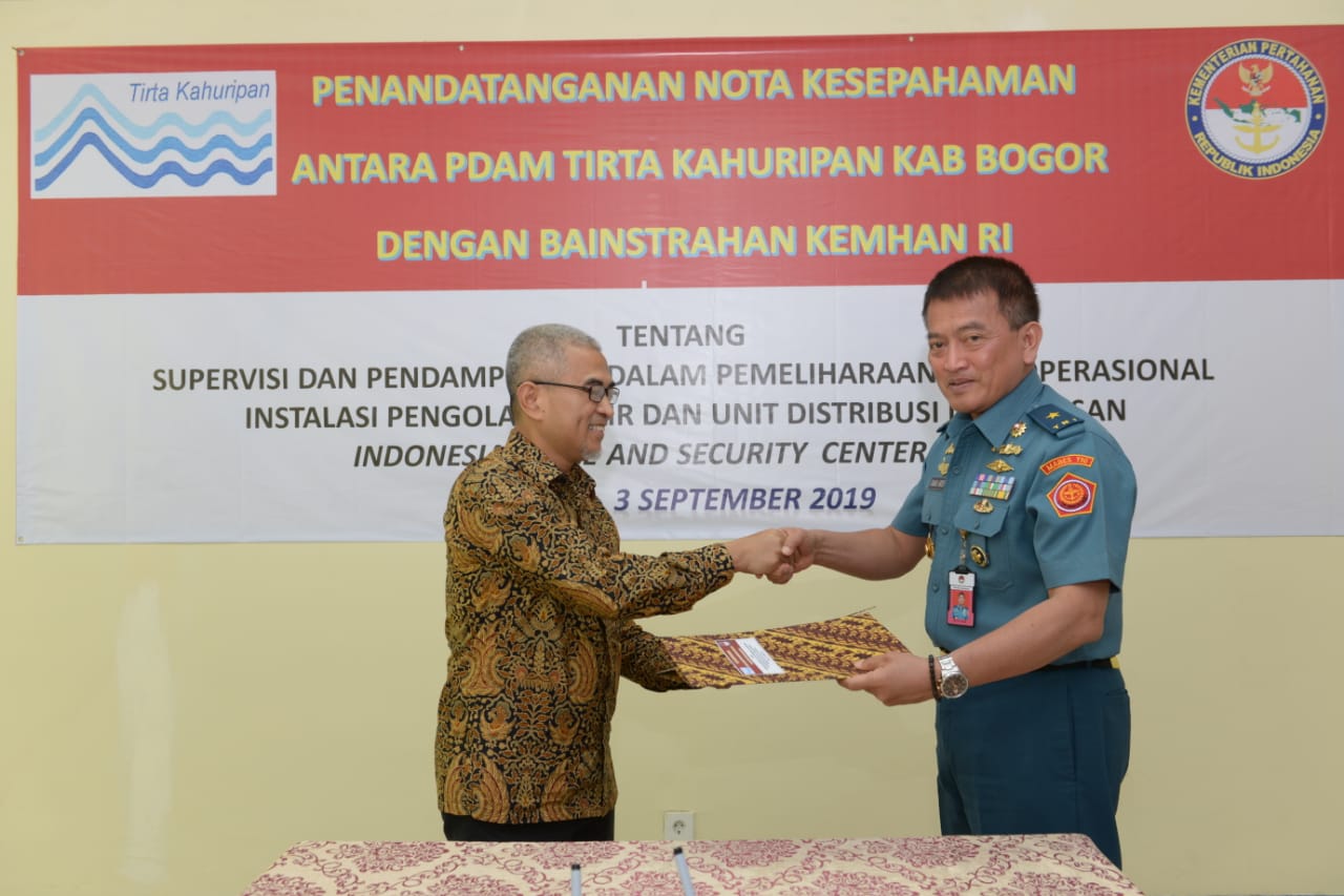 Menandatangani Nota Kesepahaman (Mou) antara PDAM Tirta Kahuripan Kabupaten Bogor dengan Bainstrahan kemhan RI