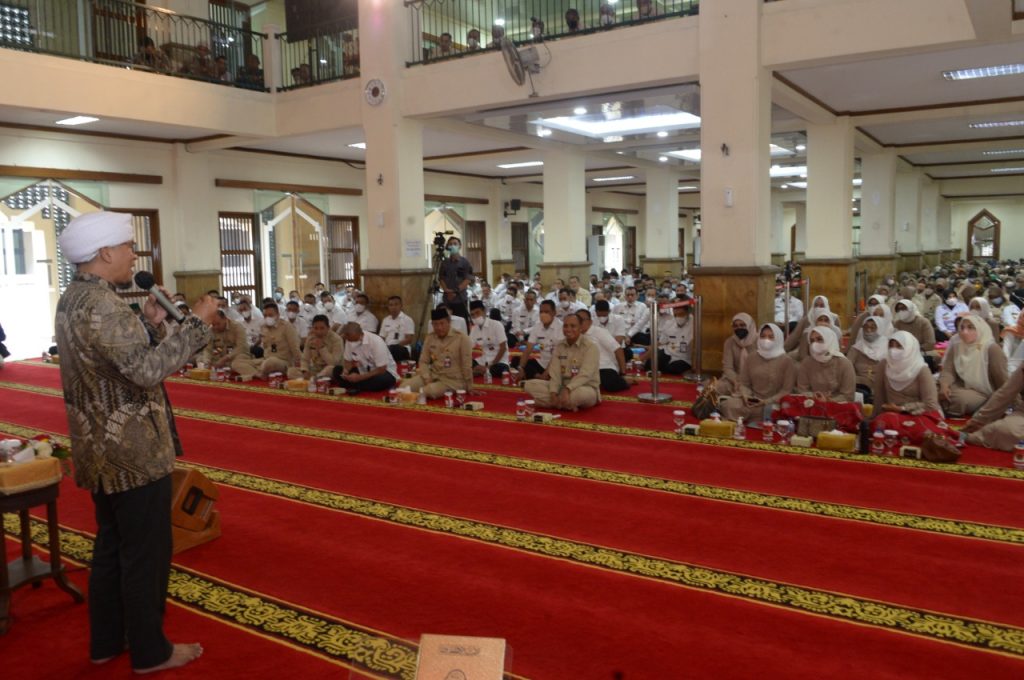 Jakarta – Kementerian Pertahanan Republik Indonesia (Kemhan RI) pada peringatan Tahun Baru Hijriah 1 Muharam 1444 H di Masjid At Taqwa Kemhan, Jakarta Rabu (3/8), menghadirkan K.H. Abdullah Gymnastiar (Aa Gym) yang memberikan tausiah siraman rohani bagi seluruh pegawai Kemhan dan pengurus DWP Kemhan.