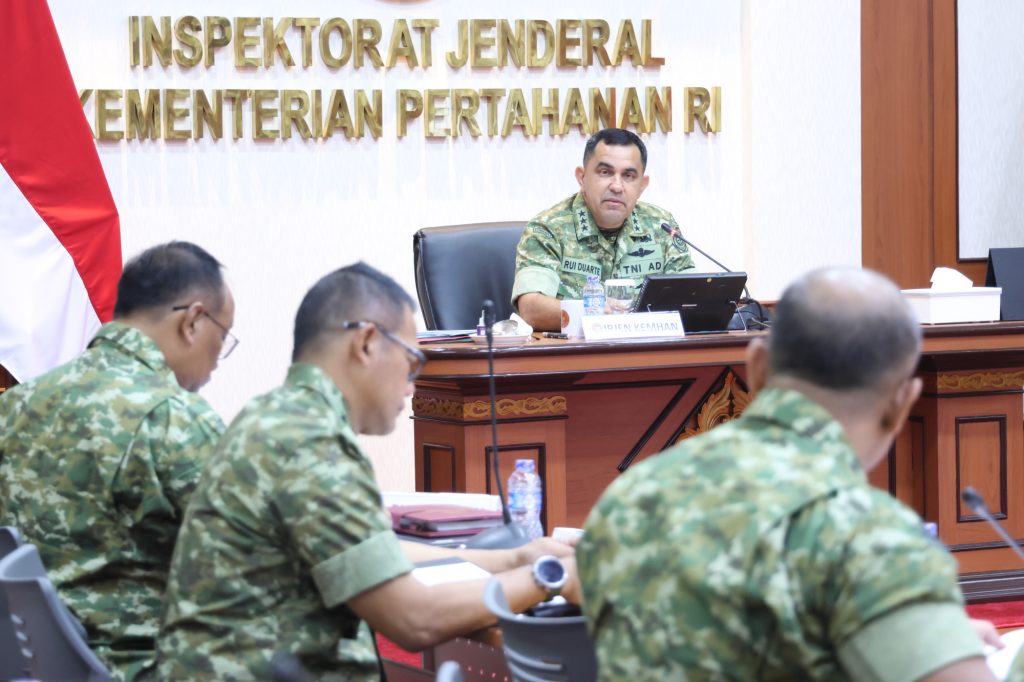 Jakarta-Inspektur Jenderal Kementerian Pertahanan (Irjen Kemhan)  Letnan.Jenderal TNI Rui F.G.P. Duarte memimpin Rapat Rencana Audit bulan Oktober 2025 pada Rumah Sakit TNI, di Ruang Rapat Lt II Gedung Gatot Subroto Itjen Kemhan, Jakarta pada Senin (20/10/2025). Rapat ini menjadi bagian upaya penguatan akuntabilitas pelaksanaan program prioritas Kementerian Pertahanan.
