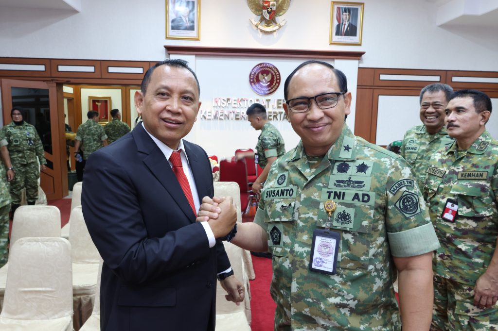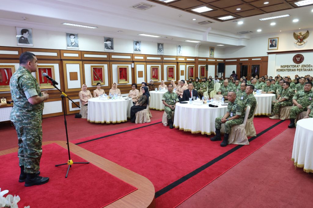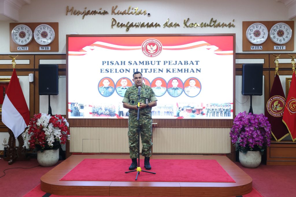 Inspektorat Jenderal Kementerian Pertahanan (Itjen Kemhan) mengadakan acara lepas sambut Ses Itjen serta pelepasan Inspektur II dan auditor madya yang memperoleh promosi jabatan eselon II di Kemhan, Unhan dan BNPT. Kegiatan berlangsung di ruang rapat Itjen Kemhan, Senin (24/11/2025).