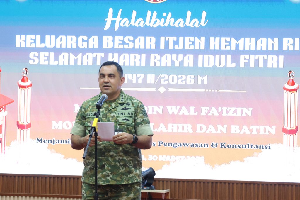 Senin, 30 Maret 2026Jakarta – Awali hari kerja pasca cuti bersama Hari Raya ldulfitri 1447 H, keluarga besar Inspektorat Jenderal Kementerian Pertahanan (Itjen Kemhan) menggelar acara Halal Bihalal yang dilaksanakan di ruang rapat Itjen Kemhan pada Senin (30/3/2026).