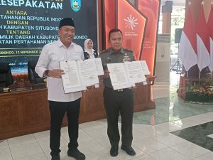 penandatanganan Nota Kesepakatan antara Kementerian Pertahanan tentang Kerjasama Penggunaan Lahan Pemkab Situbondo untuk lokasi pembangunan Sarana dan Prasarana Daerah Latihan Terintegrasi TNI