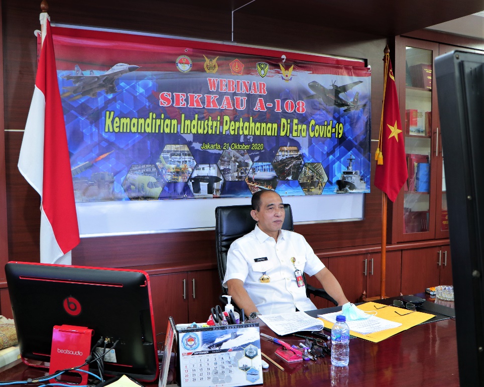Rabu 21/10/2020 Sesditjen Pothan Kemhan Brigjen TNI Aribowo Teguh Santoso, S.T., M.Sc. hadir mewakili Menteri Pertahanan sebagai keynote speech dalam Webinar Nasional Pasis Sekkau A-108. Turut hadir dalam kegiatan ini Komandan Kodiklatau Marsda TNI Tatang Harlyansyah, S.E., M.M. , Komandan Sekkau, narasumber dari Kemhan Kolonel Tek Dedy Laksmono (Kasubdit IDKLO Dittekindhan Ditjen Pothan Kemhan), serta Perwira Siswa Sekkau yang berjumlah 103 orang. Webinar Pasis Sekkau A-108 mengangkat tema “Kemandirian Industri Pertahanan di Era Covid-19”.