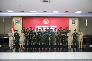 Jakarta, 1 Oktober 2025. Dirjen Pothan Kemhan Laksda TNI Sri Yanto, S.T. menerima laporan kenaikan pangkat Pegawai Periode 1 Oktober 2025 di Aula Bela Negara Lt. 8 Gd. Suprapto. Hadir dalam acara tersebut Ses Ditjen Pothan Kemhan, para Direktur, Eselon III, Eselon IV, serta pegawai yang naik pangkat sebanyak 17 orang.