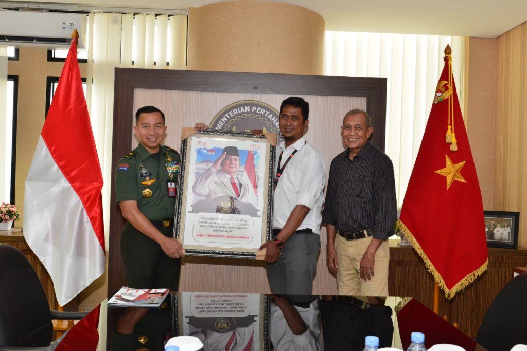 Dalam kesempatan ini, Karo Humas mewakili Menteri Pertahanan menerima cendera mata dari Majalah FIVE berupa foto Menhan Prabowo yang bertuliskan kutipan ucapan Menteri Pertahanan RI Prabowo Subianto. “Saya bicara apa adanya. Yang benar, saya apresiasi. Yang salah, saya bilang salah. Inilah ajaran leluhur saya”.