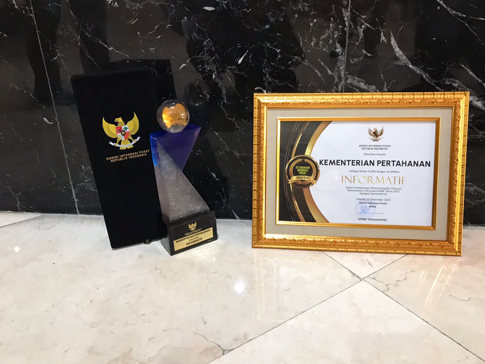 Jakarta — Kementerian Pertahanan Republik Indonesia (Kemhan RI) kembali meraih predikat “Informatif” dari Komisi Informasi Pusat (KIP) pada ajang Anugerah Keterbukaan Informasi Publik Tahun 2025. Penghargaan tersebut diberikan berdasarkan hasil Monitoring dan Evaluasi (Monev) Keterbukaan Informasi Publik Tahun 2025 untuk kategori Kementerian, yang diselenggarakan di Hotel Bidakara, Jakarta, Senin (15/12/2025).
