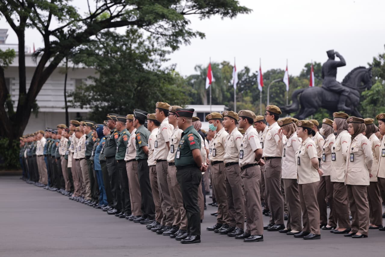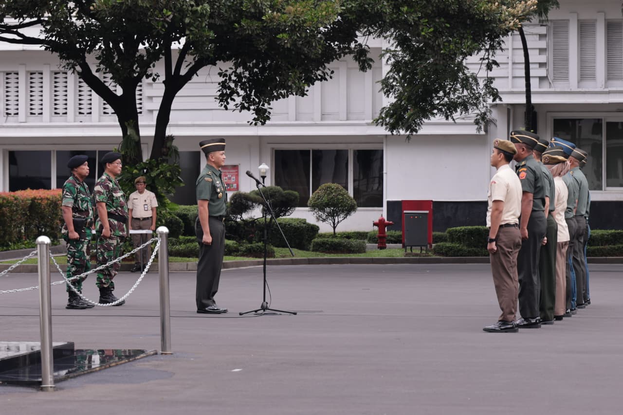 Jakarta – Kepala Biro Hubungan Masyarakat dan Informasi Pertahanan (Karo Humas dan Infohan) Setjen Kemhan RI, Brigadir Jenderal TNI Rico Ricardo Sirait, memimpin apel pagi Sekretariat Jenderal di Lapangan Bhinneka Tunggal Ika Kemhan RI, Jakarta, pada Senin (2/3/2026). Dalam amanatnya, Brigjen TNI Rico mengingatkan seluruh pegawai agar momentum bulan Ramadan dijadikan pemacu kedisiplinan dan integritas sebagai aparatur negara.