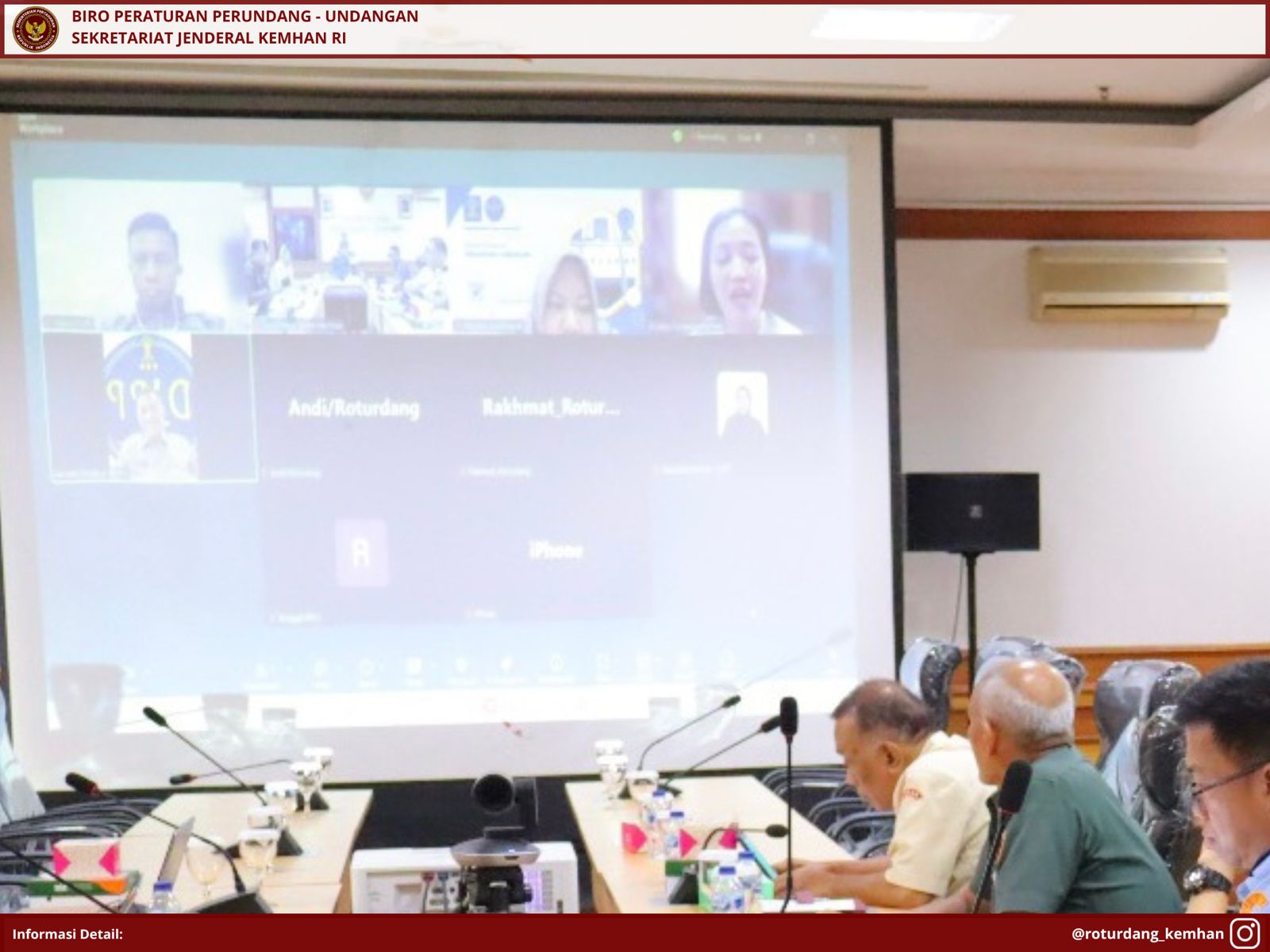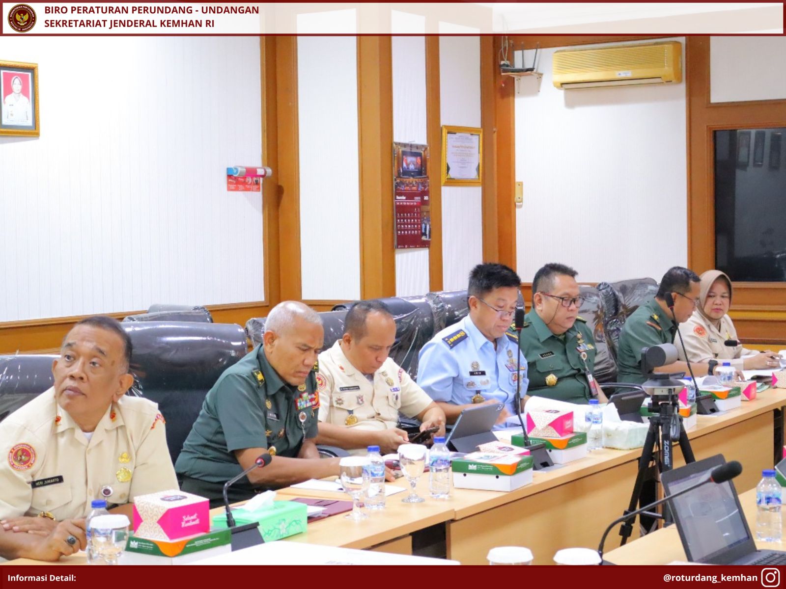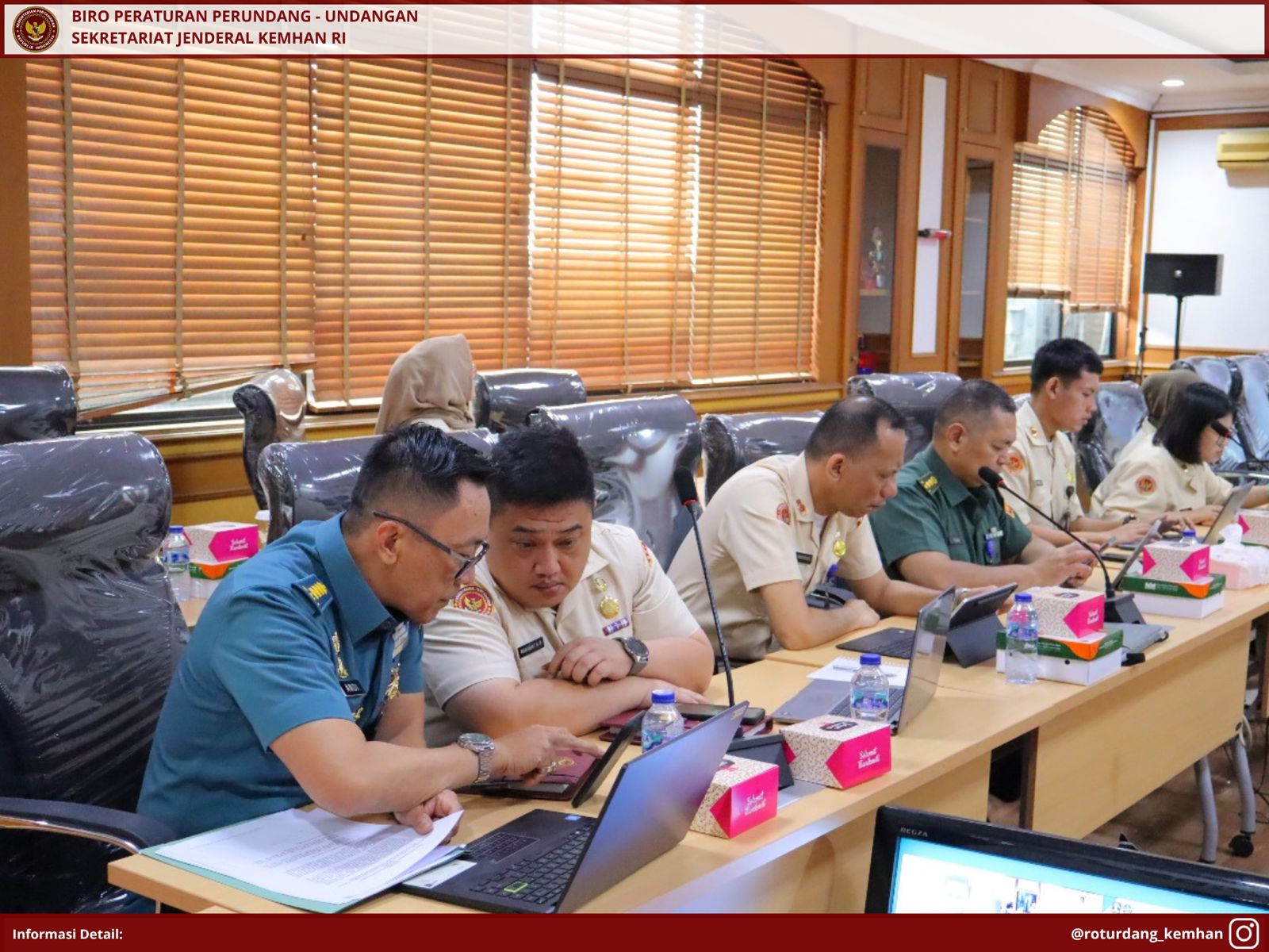Jakarta, 18 November 2025 – Biro Peraturan Perundang-undangan Sekretariat Jenderal Kementerian Pertahanan mengikuti Rapat Pleno Harmonisasi Rancangan Peraturan Menteri Pertahanan tentang Perubahan atas Peraturan Menteri Pertahanan Nomor 8 Tahun 2022 tentang Pedoman Pembinaan Kesadaran Bela Negara yang diselenggarakan Direktorat Jenderal Peraturan Perundang-undangan Kementerian Hukum pada Selasa, 18/11/2025 secara daring melalui aplikasi Zoom Meeting. Rapat Pleno Harmonisasi dibuka dan dipimpin oleh Direktur Harmonisasi Peraturan Perundang-undangan I Ditjen Peraturan Perundang-undangan Kementerian Hukum Hernadi, S.H., M.H. Rapat dilanjutkan dengan penyampaian urgensi penyusunan Rancangan Peraturan Menteri Pertahanan oleh Kepala Biro Peraturan Perundang-undangan Setjen Kemhan Sri Sulastiyani, S.H., M.H.Dalam pemaparannya disampaikan bahwa Rancangan Peraturan Menteri ini disusun untuk memberikan pedoman dalam pelaksanaan kegiatan Pembinaan Kesadaran Bela Negara di Kementerian/Lembaga pemerintah non Kementerian, Tentara Nasional Indonesia, Kepolisian Republik Indonesia, Pemerintah Daerah, serta komponen bangsa lainnya. Penyusunan regulasi ini juga merupakan penyesuaian terhadap kebutuhan pembaruan materi, perluasan kriteria narasumber dan peserta, serta penyederhanaan kewenangan penerbitan sertifikat guna mendukung penyelenggaraan Pembinaan Kesadaran Bela Negara yang lebih efektif, adaptif, dan masif. Pimpinan rapat menyampaikan dukungan positif terhadap penyusunan regulasi ini.Diharapkan, penyusunan peraturan ini dapat menjadi langkah strategis untuk mempertegas pedoman, meningkatkan kualitas pembinaan, serta memperluas jangkauan kader bela negara sebagai bagian dari upaya menjaga kedaulatan dan keutuhan NKRI. Regulasi ini juga diharapkan mampu memperkuat peran Kementerian/Lembaga, Pemerintah Daerah, TNI, Polri, dan seluruh komponen bangsa dalam menumbuhkan nilai-nilai dasar bela negara, nasionalisme, dan patriotisme di seluruh Indonesia.
