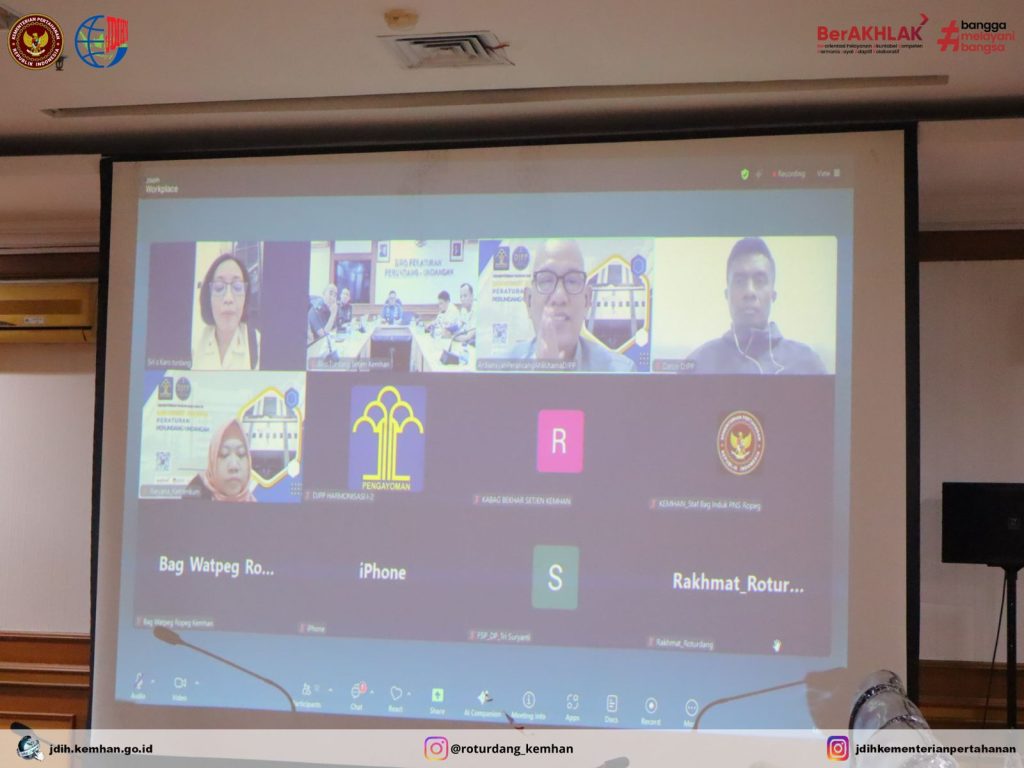 Biro Peraturan Perundang-undangan Sekretariat Jenderal Kementerian Pertahanan mengikuti rapat Pleno Harmonisasi Rancangan Peraturan Menteri Pertahanan tentang Perubahan Kedua atas Peraturan Menteri Pertahanan Nomor 18 Tahun 2018 tentang Pakaian Seragam Kementerian Pertahanan pada Selasa, 02/12/2025 secara daring melalui aplikasi Zoom Meeting.
