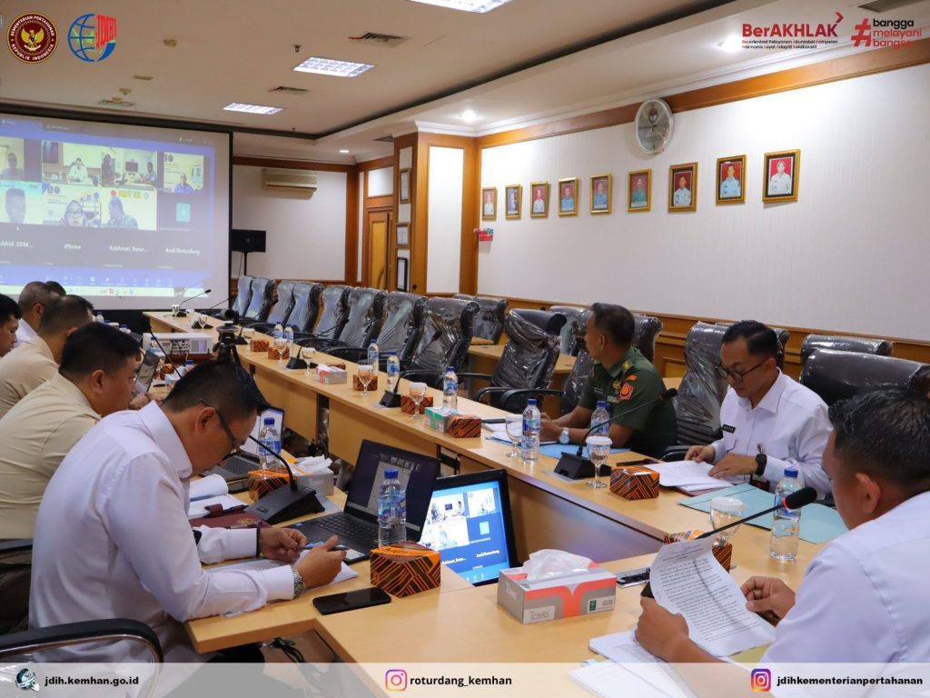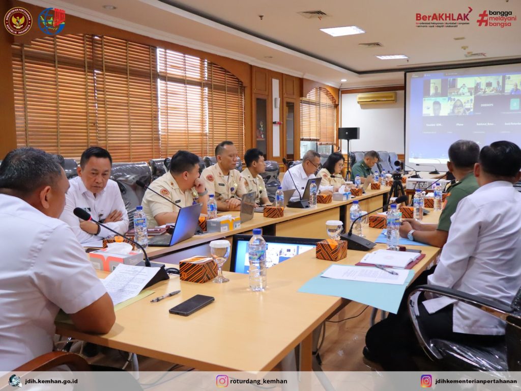 Rapat Pleno Harmonisasi dibuka dan dipimpin oleh Perancang Peraturan Perundang-undangan Ahli Utama Ditjen Peraturan Perundang-undangan Kementerian Hukum Ardiansyah, S.H., M.H. Rapat dihadiri oleh Dirrah Komhan Ditjen Strahan Kemhan Brigjen TNI Ali Aminudin, SE.,M.M., dan Kabag Rancanghar II Roturdang Setjen Kemhan beserta staf serta Plt. Kasubdit Misi Pemeliharaan Perdamaian Ditrahkomhan Ditjen Strahan Kemhan beserta staf. Rapat dilanjutkan dengan penyampaian urgensi penyusunan Rancangan Peraturan Menteri Pertahanan oleh Dirrahkomhan Ditjen Strahan Kemhan Brigjen TNI Ali Aminudin, SE.,M.M..