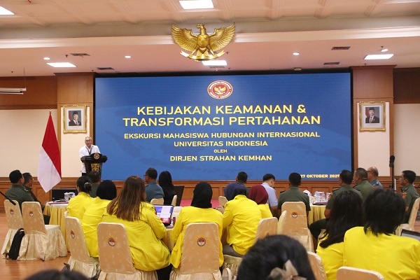 Ekskursi Mahasiswa Hubungan Internasional Universitas Indonesia dengan tema Kebijakan Keamanan dan Transformasi Pertahanan di Ditjen Strahan Kemhan